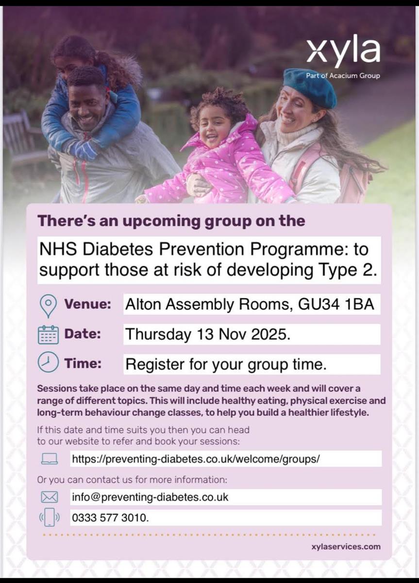 Upcoming group: NHS Prevention Programme: to support those at risk of developing Type 2 Diabetes.
